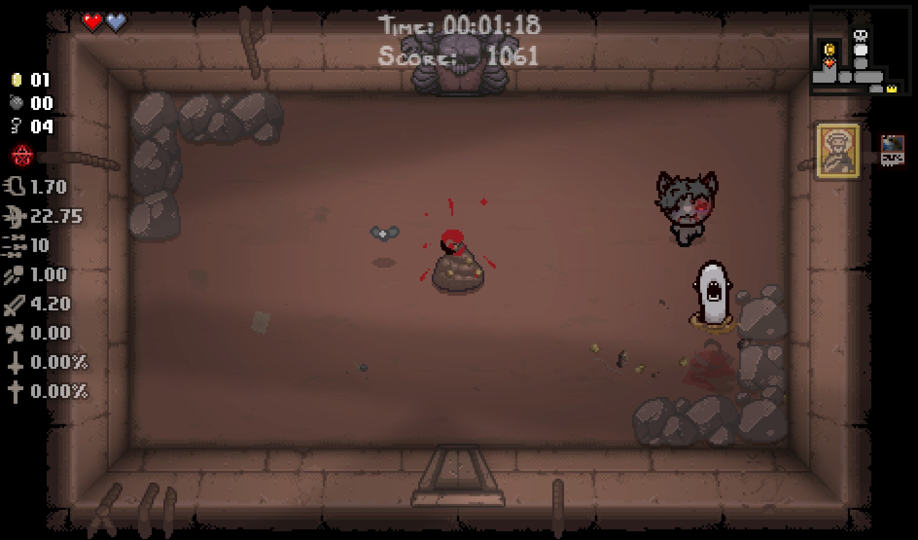 If you have extra lives either from collecting a 1UP Ankh or Dead Cat bosses can be re-fought at the cost of one life in order to collect more items by killing oneself inside of their room - for example with bombs or with the IV BagThis can be abused to quickly gain all of the possible Boss Room upgrades and with the aid of The Dice can force normal Treasure Room items to.
