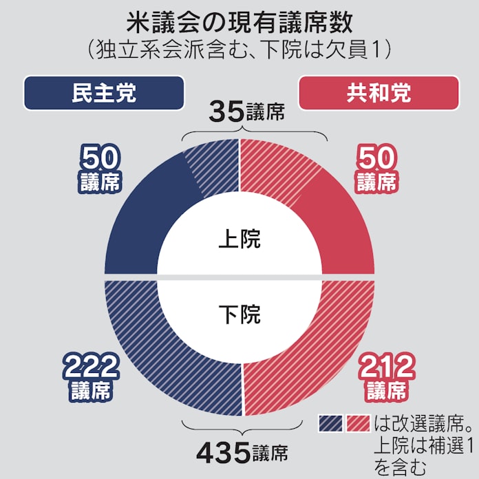 中間選挙は政権持ってる側が減らしやすいってどっかで聞いた 16 それでも動く名無し 20221109水 12083504 IDsema63WWd 民主と共和でほぼ5050なんやろ. 1 day ago米中間選挙は日本時間の8日夜8時から米国東部の州などで始まる 議会では現在上下両院ともにバイデン大統領率いる与党民主党が主導権を握っているが米国の世論調. 米中間選挙 4年に一度ある米大統領選の中間の年に実施する米連邦議会選挙議会や各候補への評価だけでなく現職大統領の2年間の政策に.